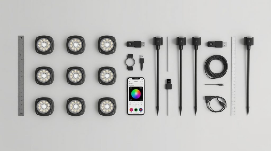 The package arrived heavier than I expected – a good sign. Inside the box, four lights were individually wrapped, each with its own stake and USB-C charging cable. The build quality immediately felt different from my old lights. The ABS housing has this substantial weight to it, not that hollow plastic feeling you get with budget options.